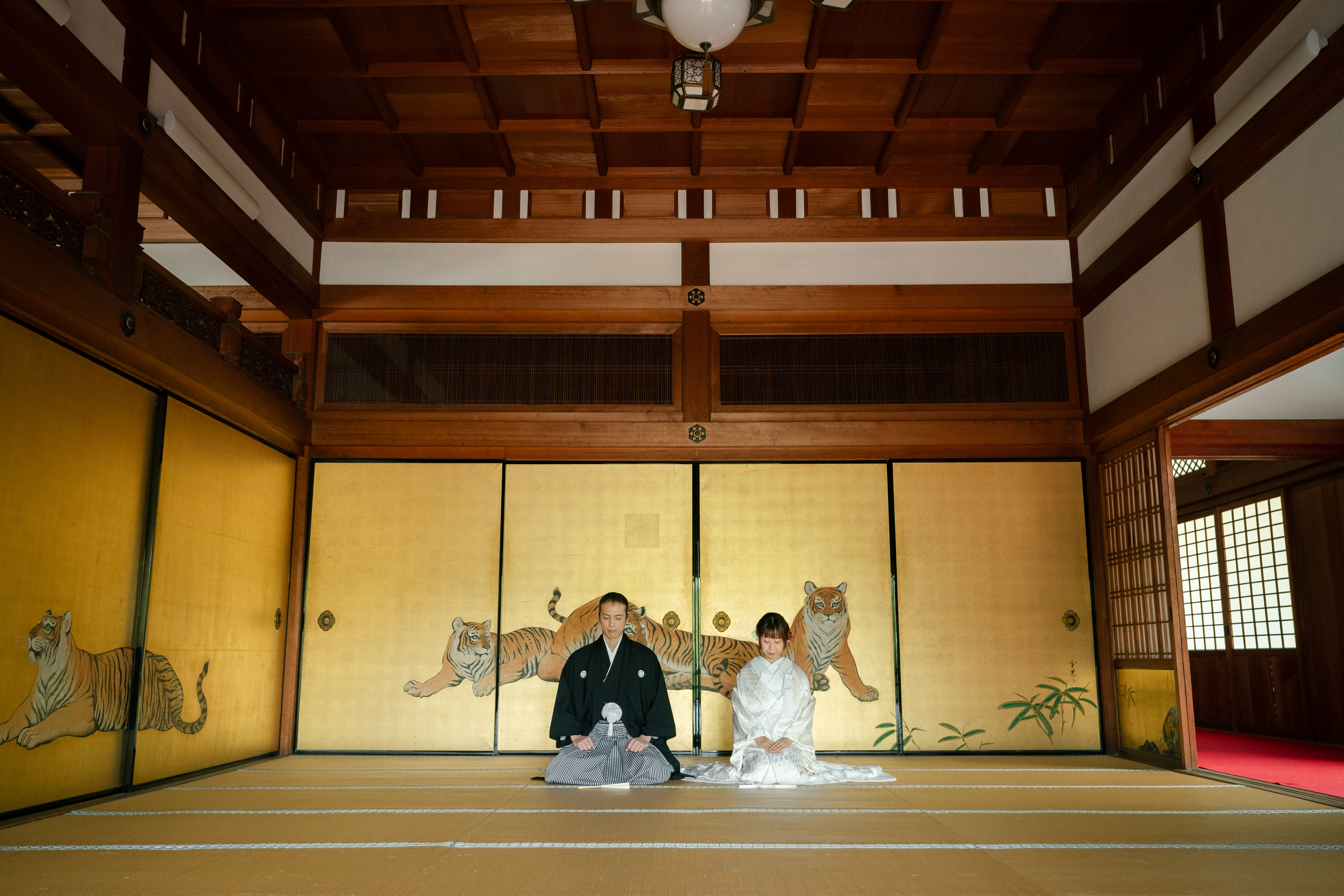 衣装:新郎様「黒の紋付袴」、新婦様「色打掛・白無垢・引き振袖いずれか1着」