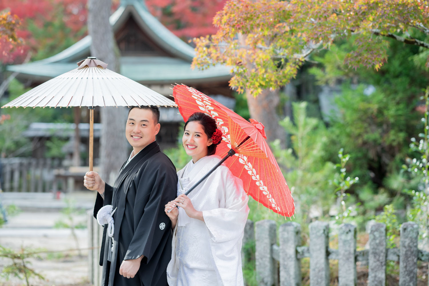 境内は、朱色の楼門や拝殿、本社など歴史的な建造物があり、花嫁衣装にぴったり。