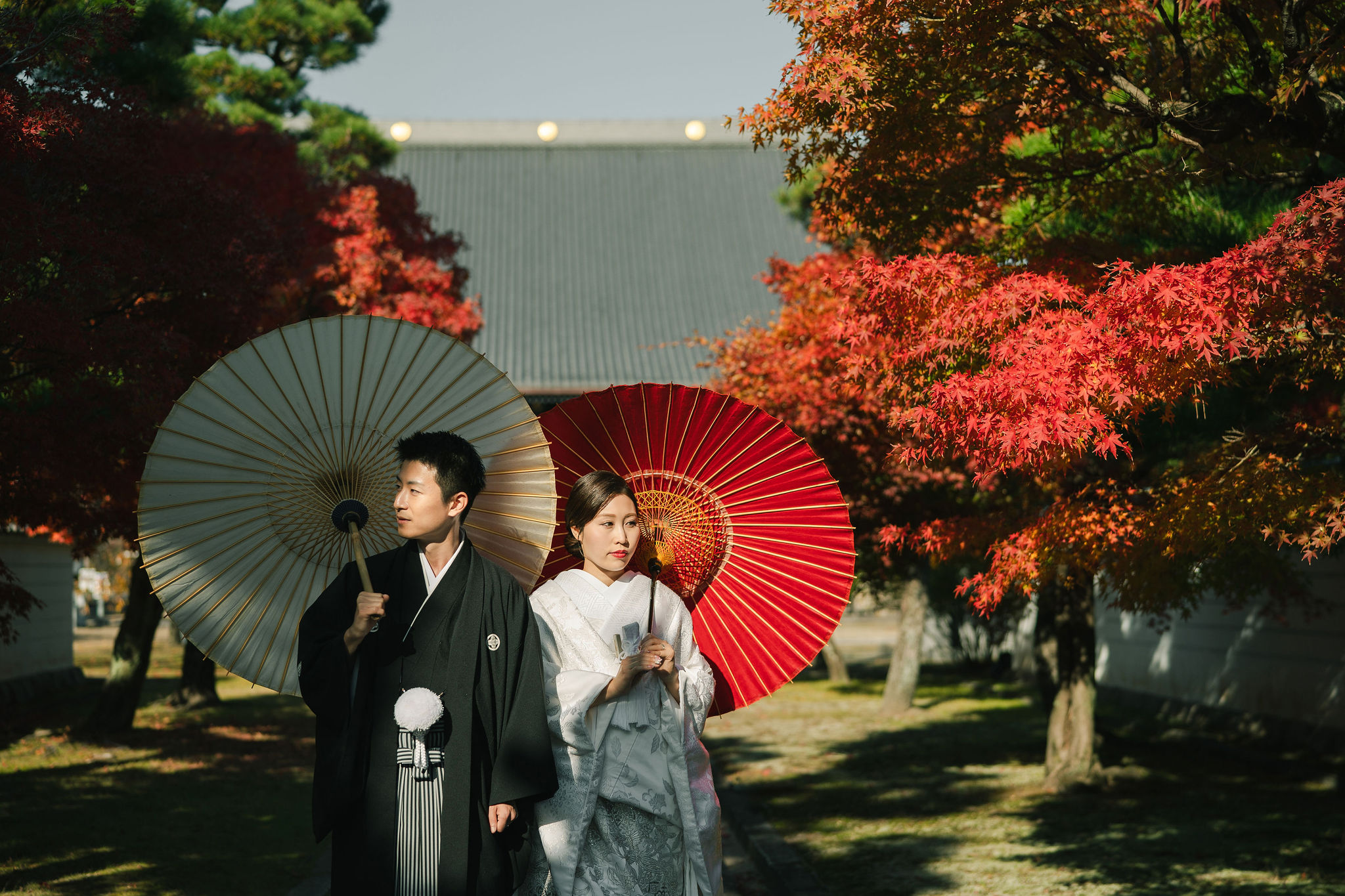 京都の妙顕寺前撮りイメージ|強い日差しと紅葉